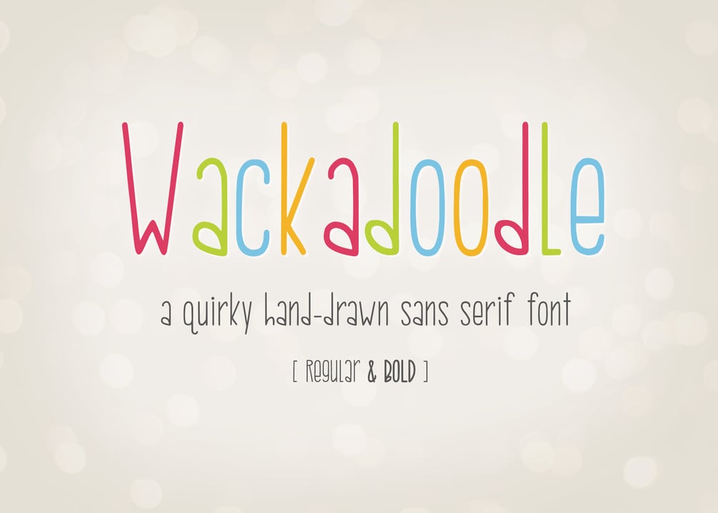 Wackadoodle is a fun, quirky handwritten font in two weights - regular & bold. This playful sans-serif is perfect for greeting cards, branding, stationery design, social media, t-shirts, invitations, & more! It includes numbers, punctuation, and over 24 alternate characters to add personality to any project.